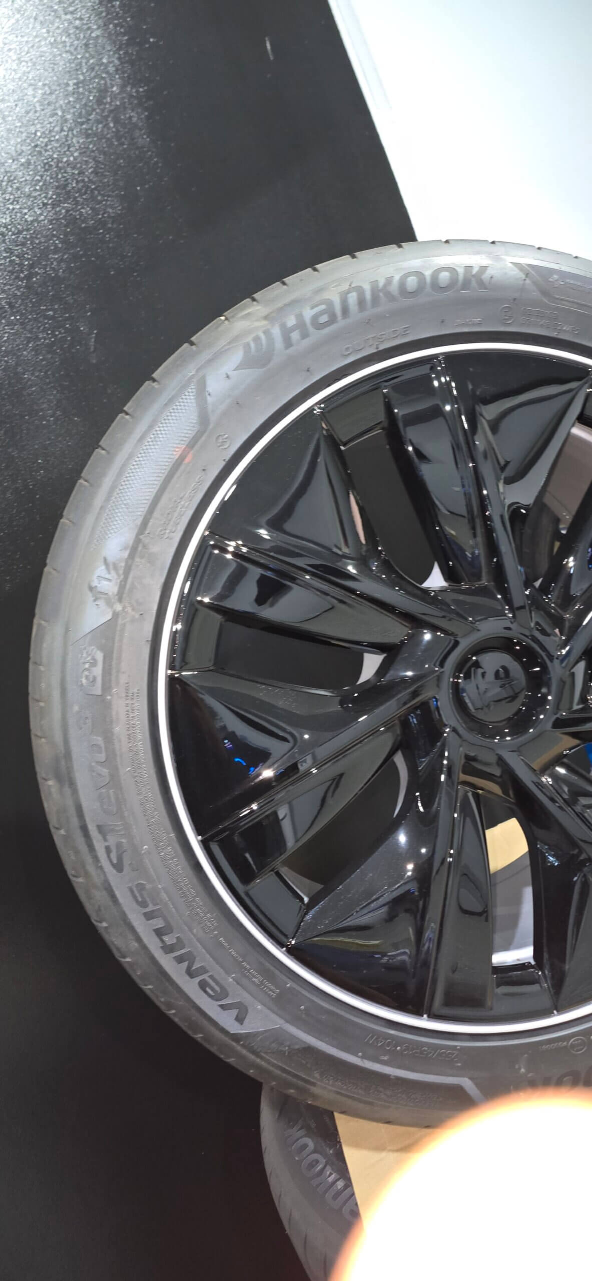 OEM 19×9.5 wheels and Hankook Ventus S1 Evo3 tyres (90% tread). Black wheel covers with silver alloys. No sensors or Lug nuts included.